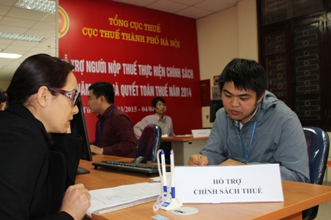 Cán bộ Cục Thuế TP.Hà Nội hướng dẫn cá nhân thực hiện quyết toán thuế TNCN. Ảnh: NM.